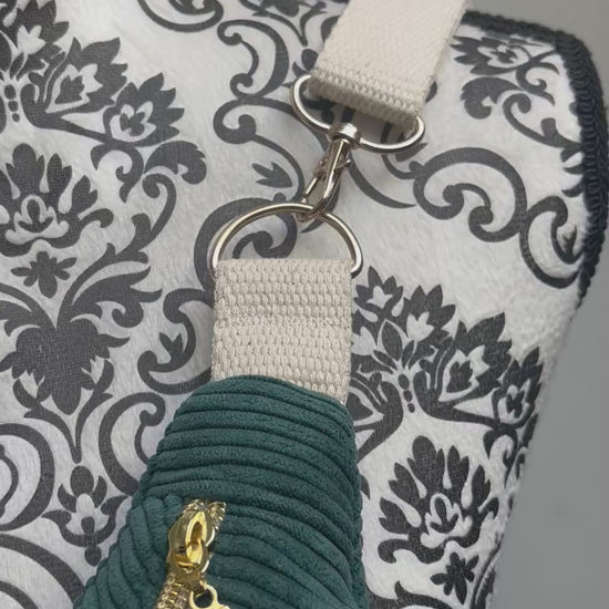 Découvrez le sac banane artisanal fait main en velours côtelé vert